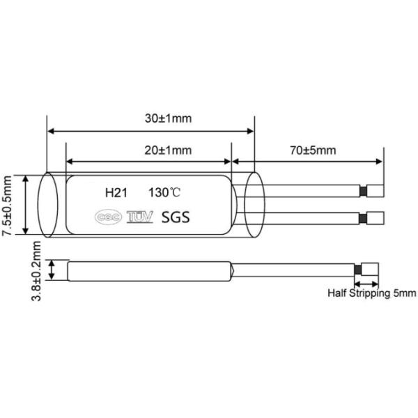 Small Size 250V 10A 130 Deg C H21 Series Thermal Cutoff Switch for Motor Coils